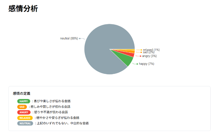 利用者の満足度等のデータは対話内容から感情を分析し、出力します。
